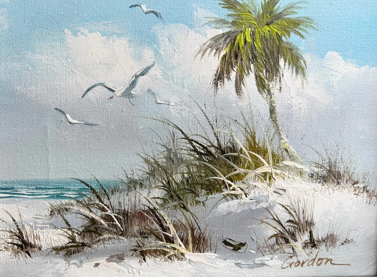 Vintage Florida Landscape Oil Painting Palm Trees Beach Seascape Seagulls Gordon Ebay